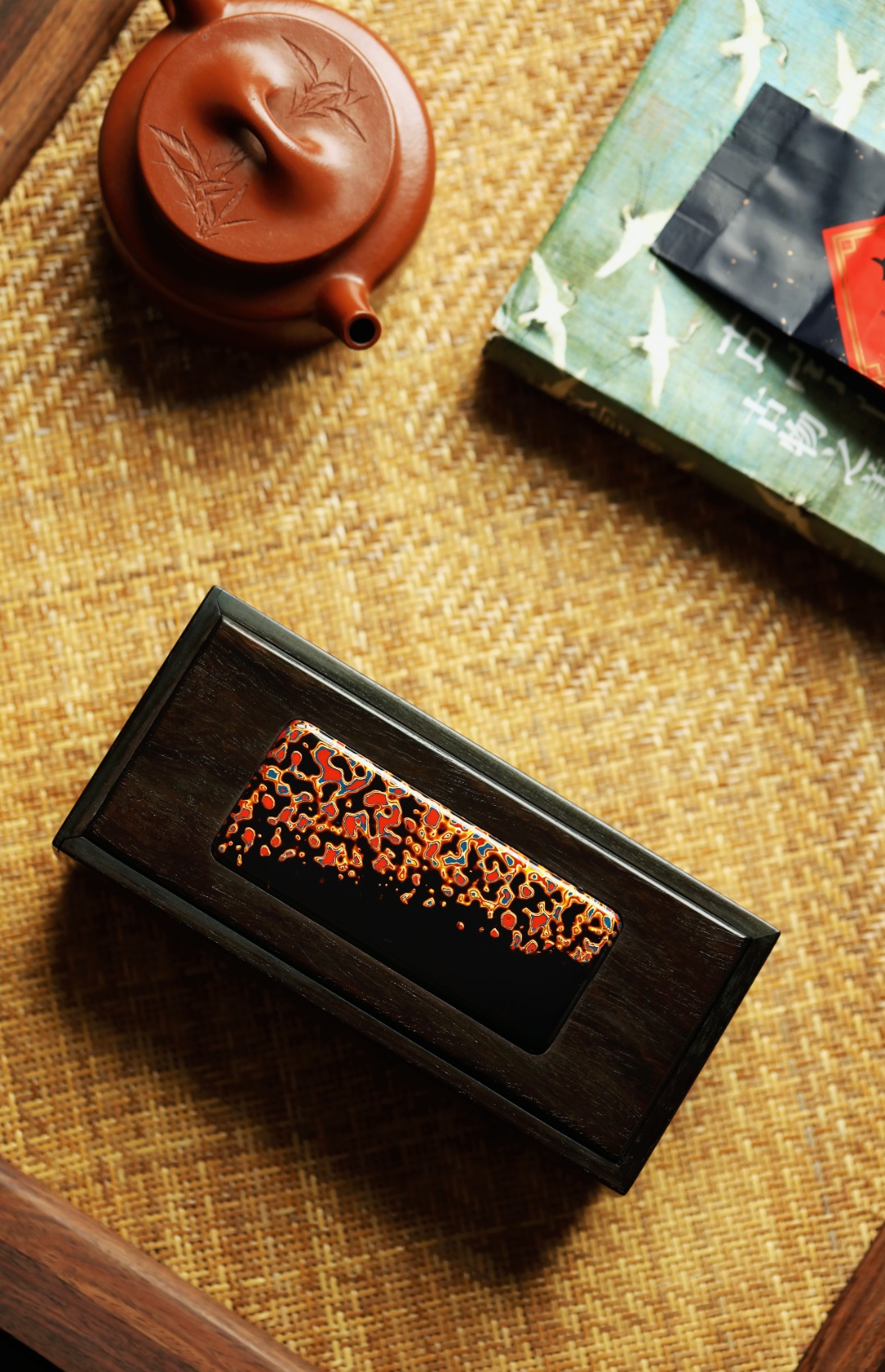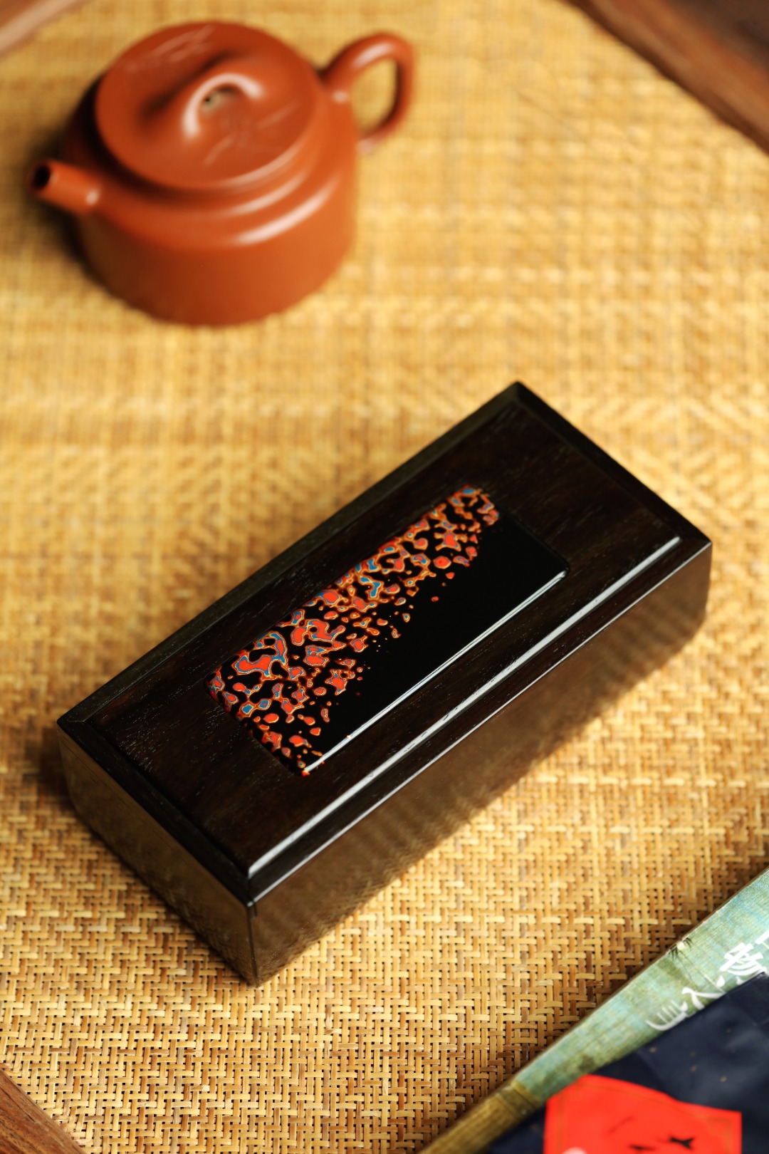 制型讲究,榫卯结构,盒面大漆点缀,精致小巧。密封性好可做香盒,茶盒,储物之用。
