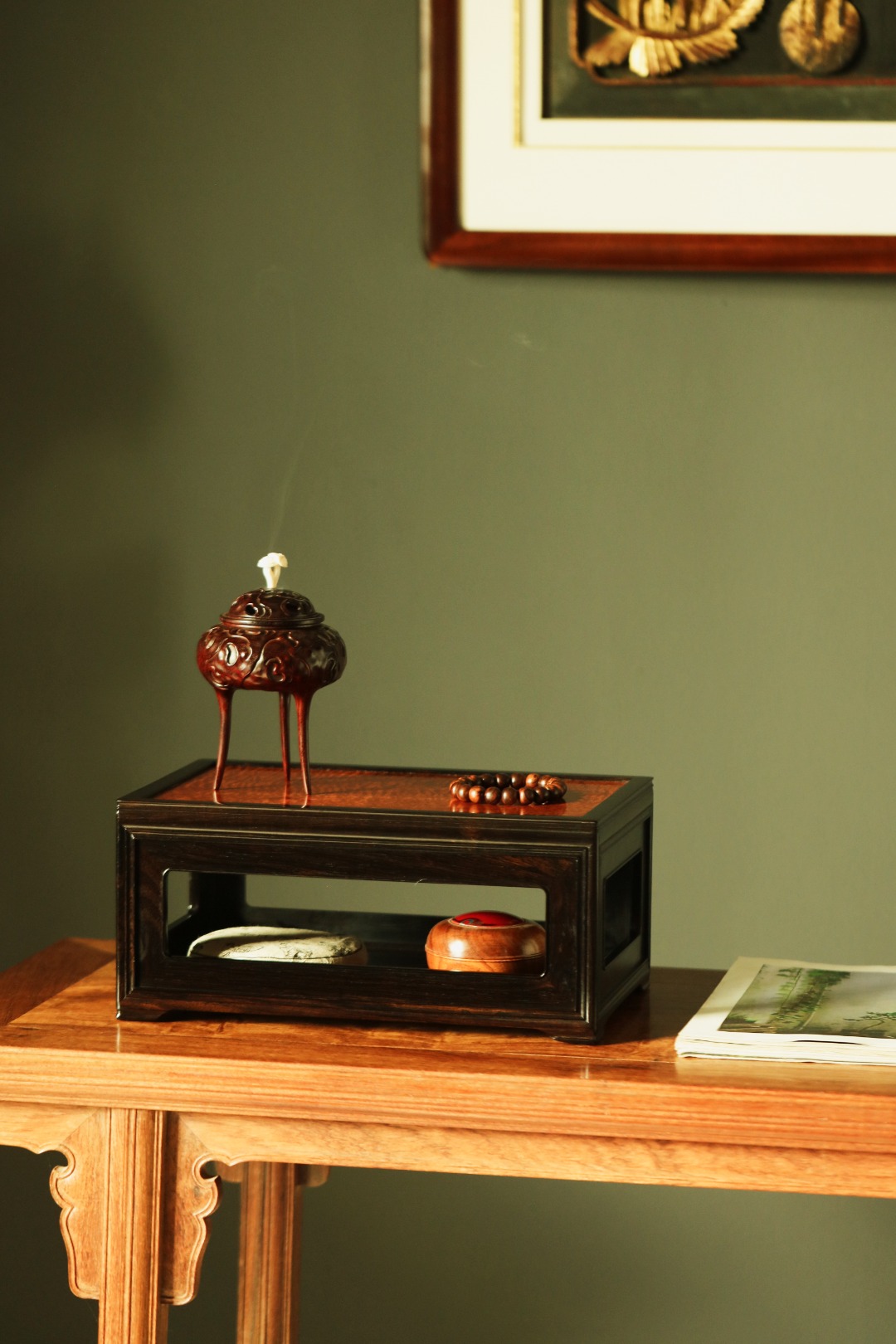 紫光檀撞色缅花,几面精挑爆满水波料,