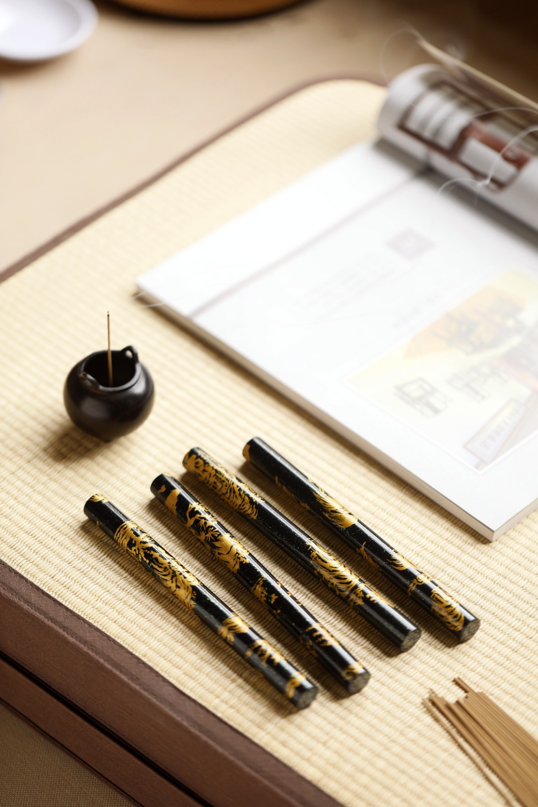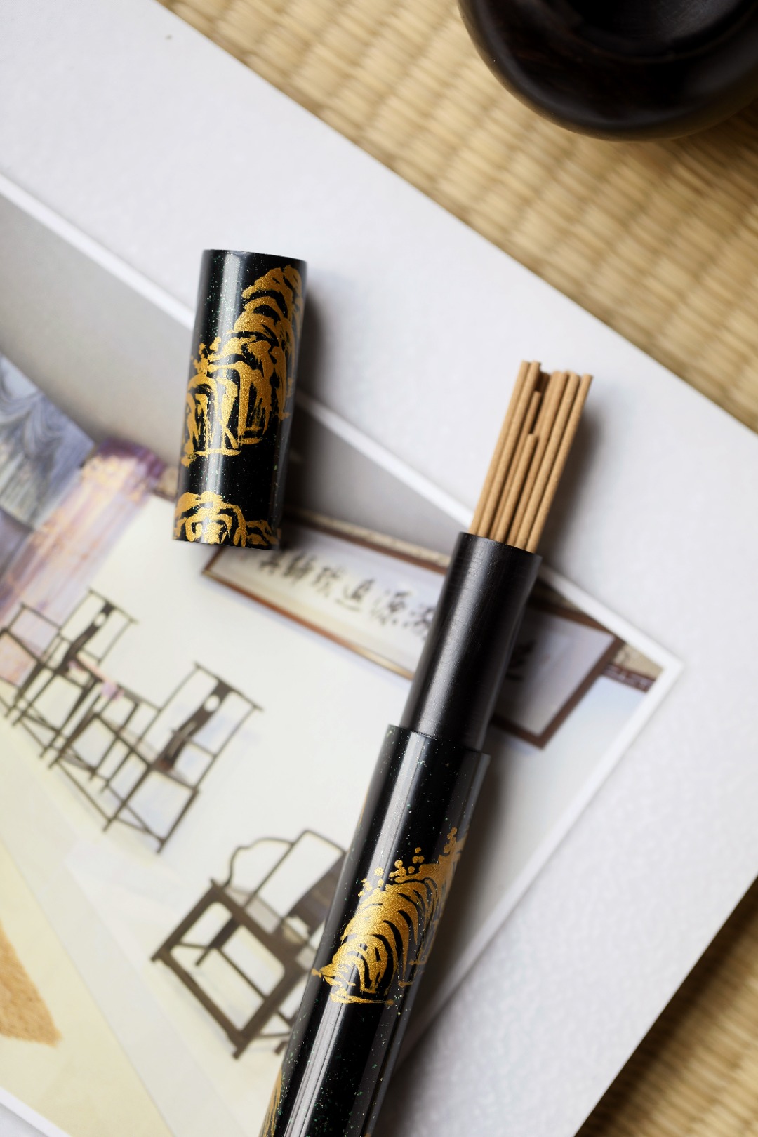 以红木为胎底,遵循古法,传承手工漆艺,