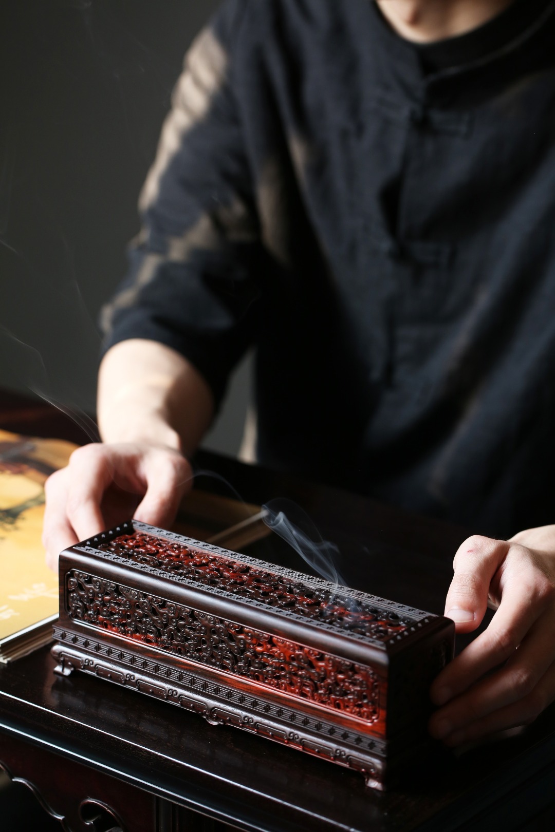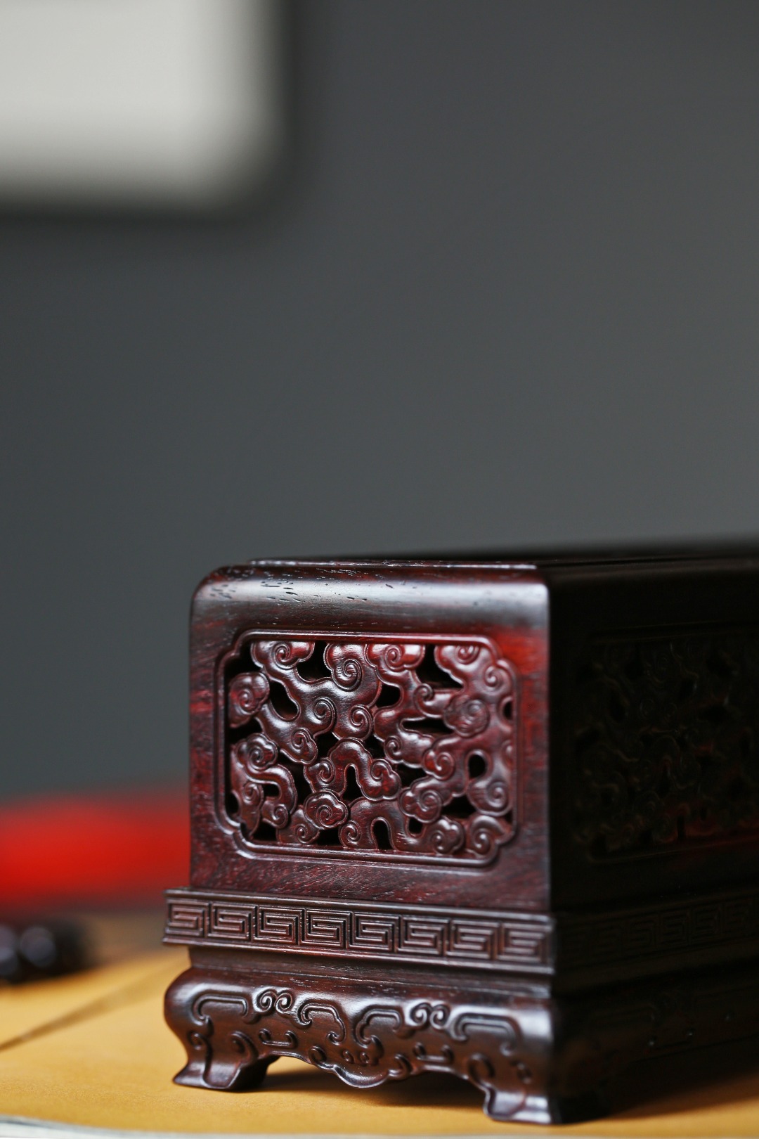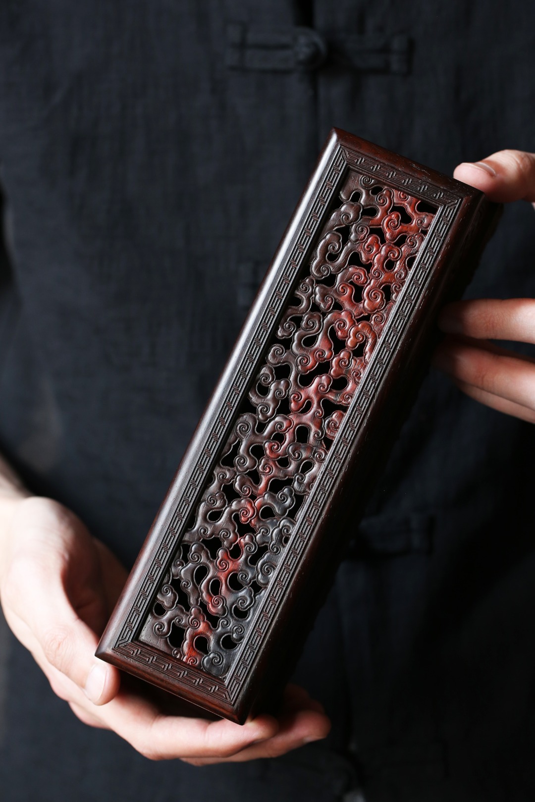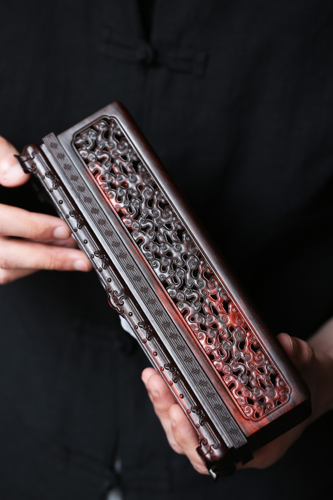 香盒周身镂空雕刻祥云纹,