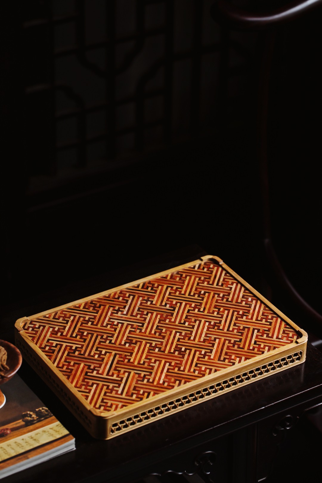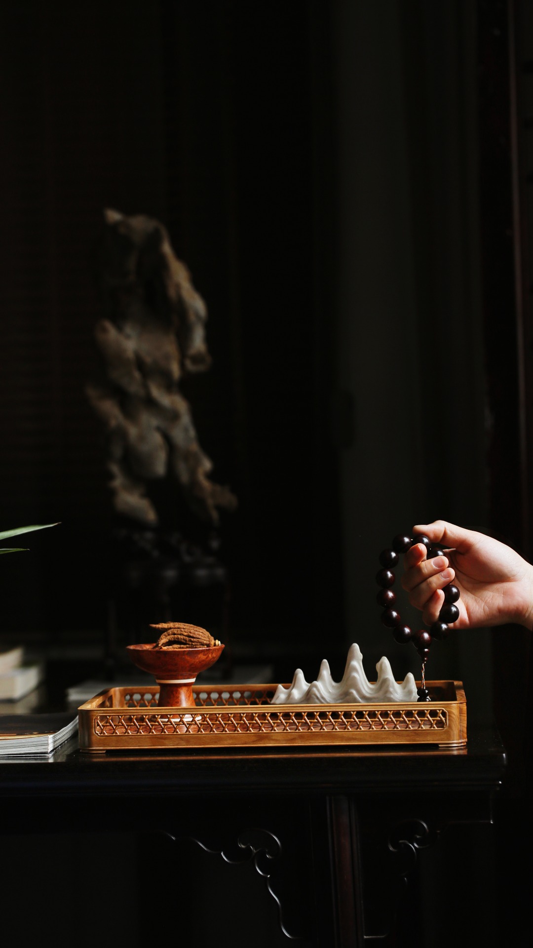 以紫檀镶嵌老山檀香,