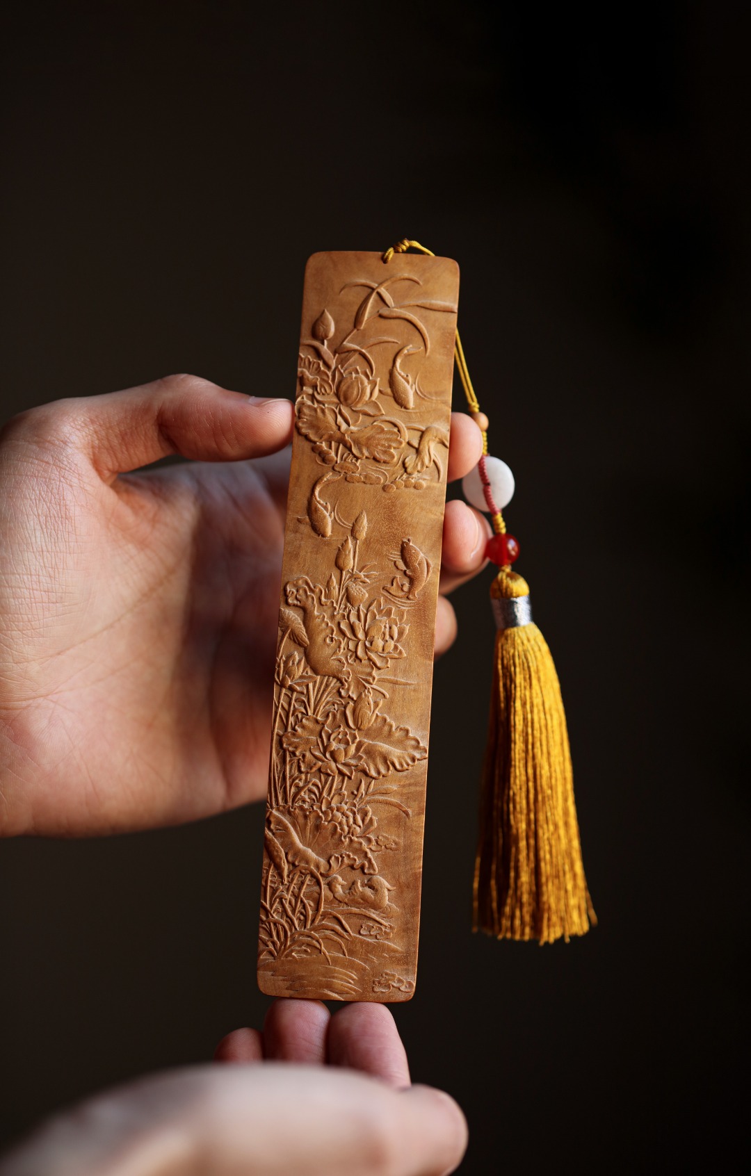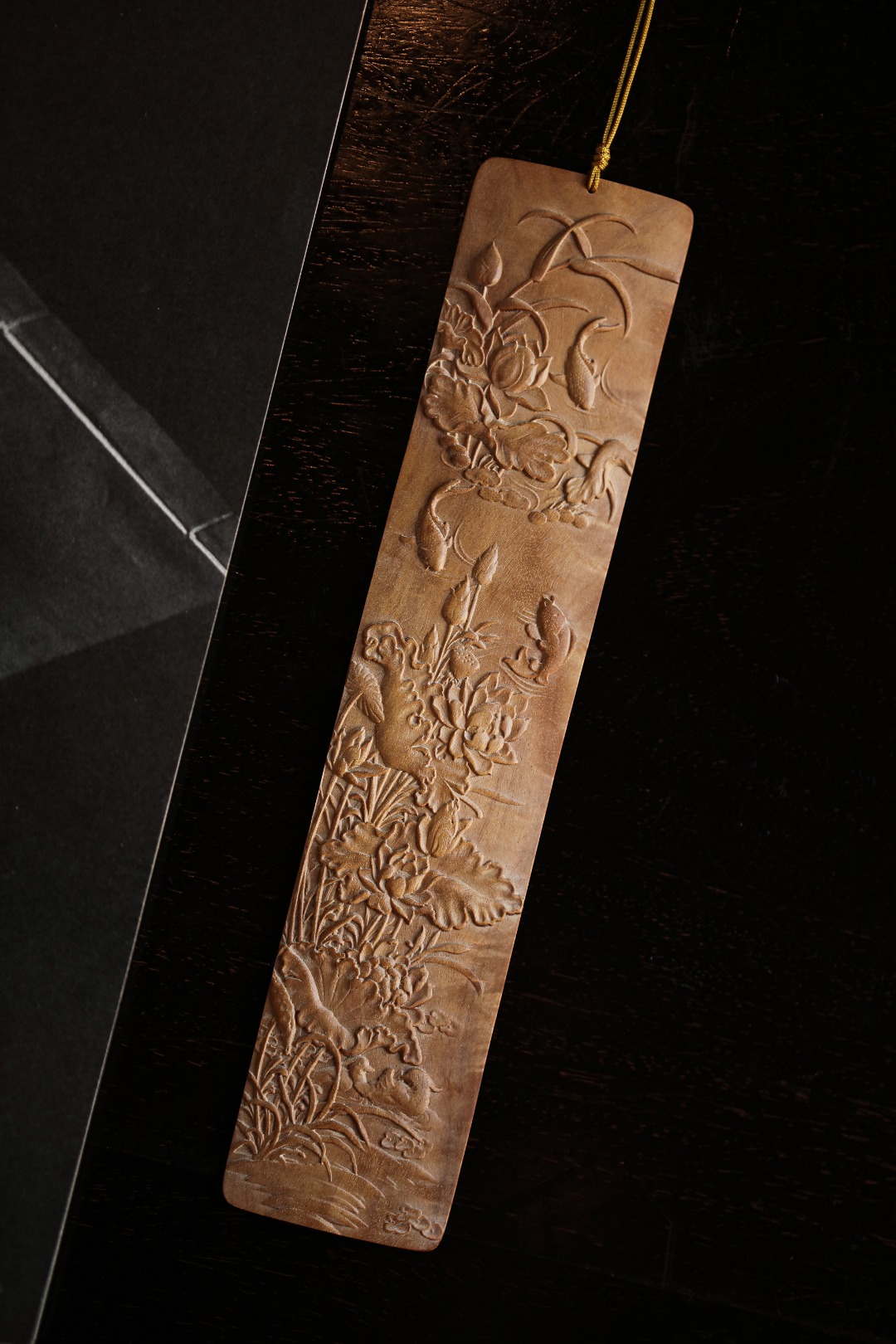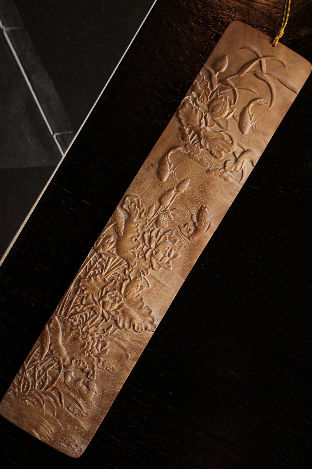 老山檀香【莲年有余】书签 18.8*3.8*0.4cm