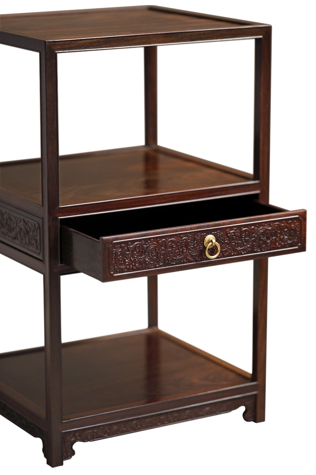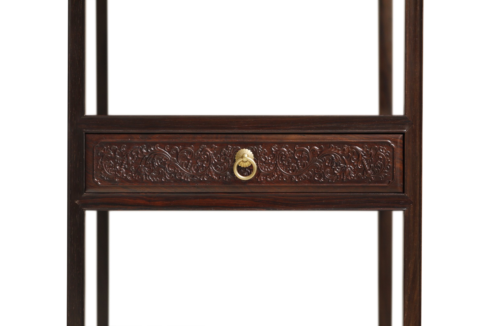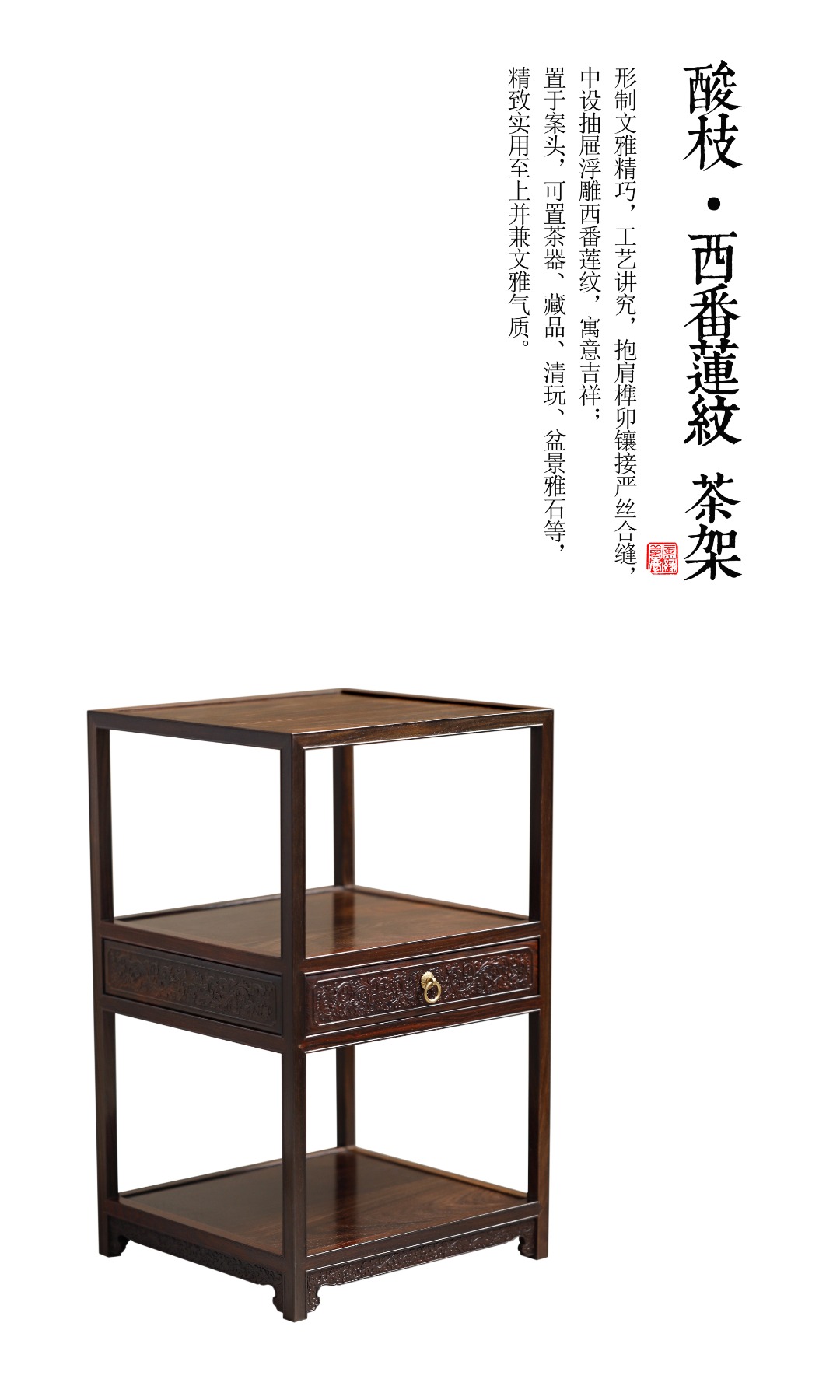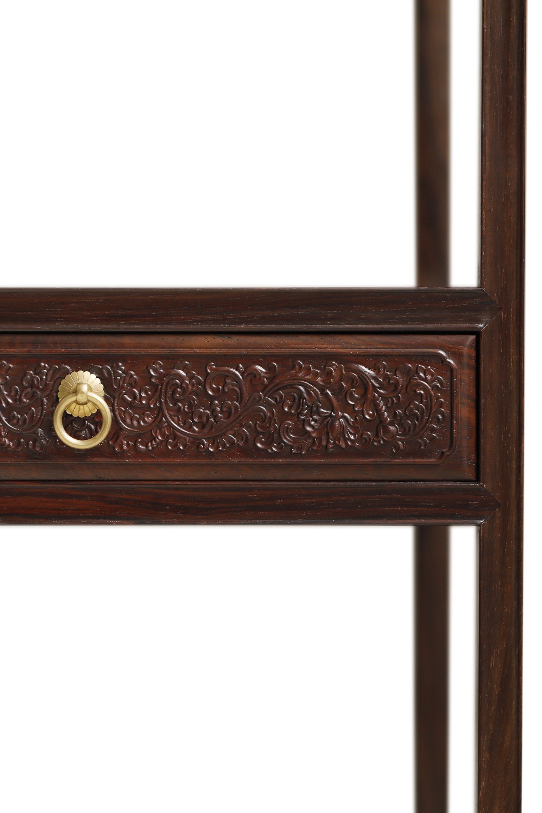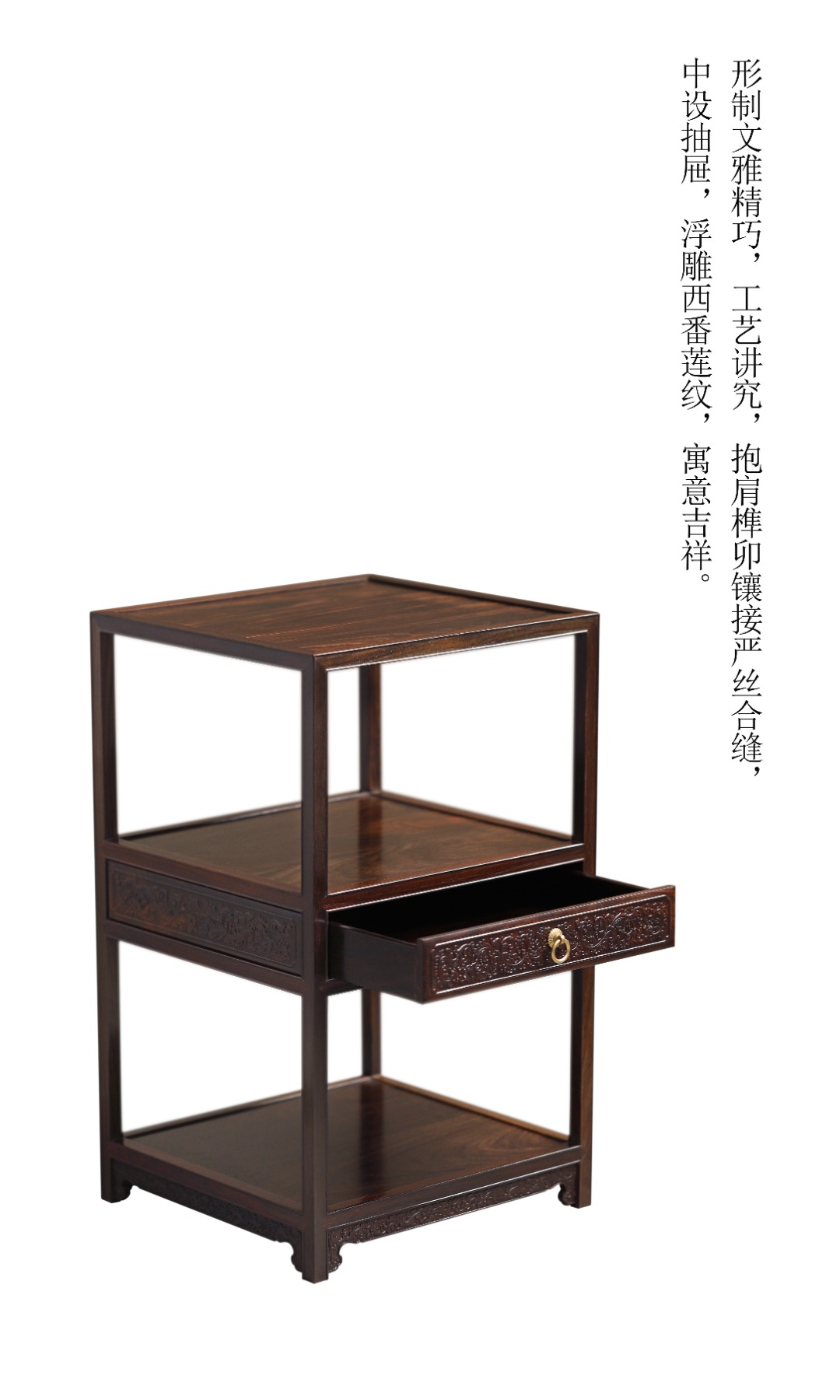 中设抽屉,浮雕西番莲纹,寓意吉祥;