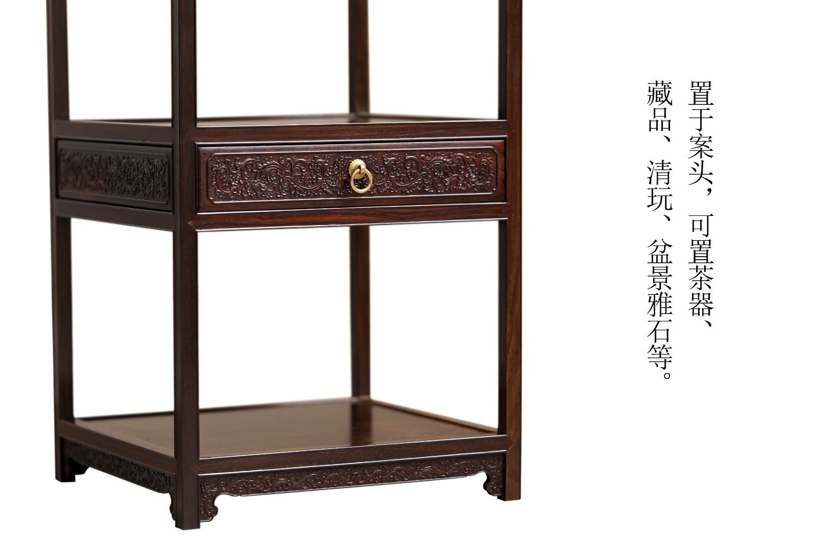 置于案头,可置茶器、藏品、清玩、盆景雅石等,